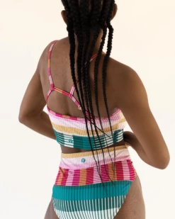 Comfortable AND supportive, the Shaka Bralette has mixed print straps with just the right length to look good and feel good in and out of the water.