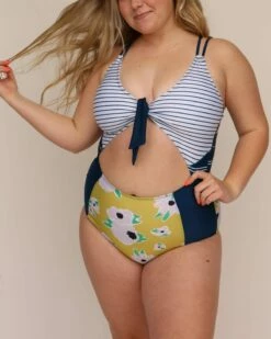 Stand out next time you hit the water in this bold mixed print fan favorite. The Mara High Tide One Piece has adjustable straps to fit every height and wouldn’t be complete without the classic Nani pockets. Prints include honey-lime floral, white and navy pinstripe, Kai stripe, and solid navy blue accents.