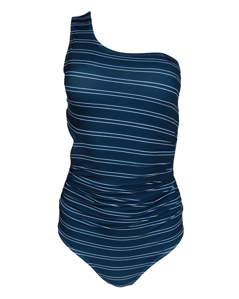 A Nani fan fave, the Cascade One Piece is the “sisterhood of traveling pants” in a swimsuit. This popular one-shoulder style with side ruching and a wide strap offers a flattering fit for every body type, especially long torsos.