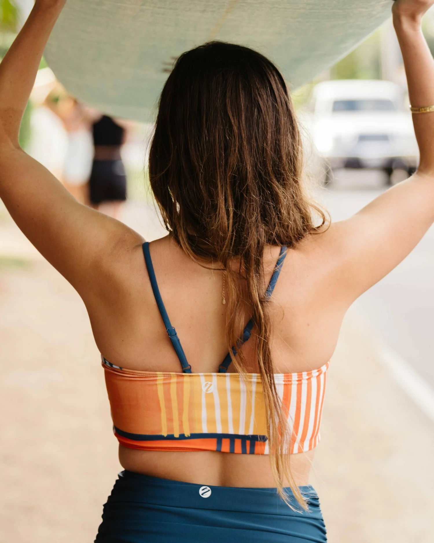 We are stoked to introduce the Nani Crossover Bralette! The unique style of this top is quickly becoming a customer fave. Adjustable spaghetti straps for comfort and minimal tan lines!