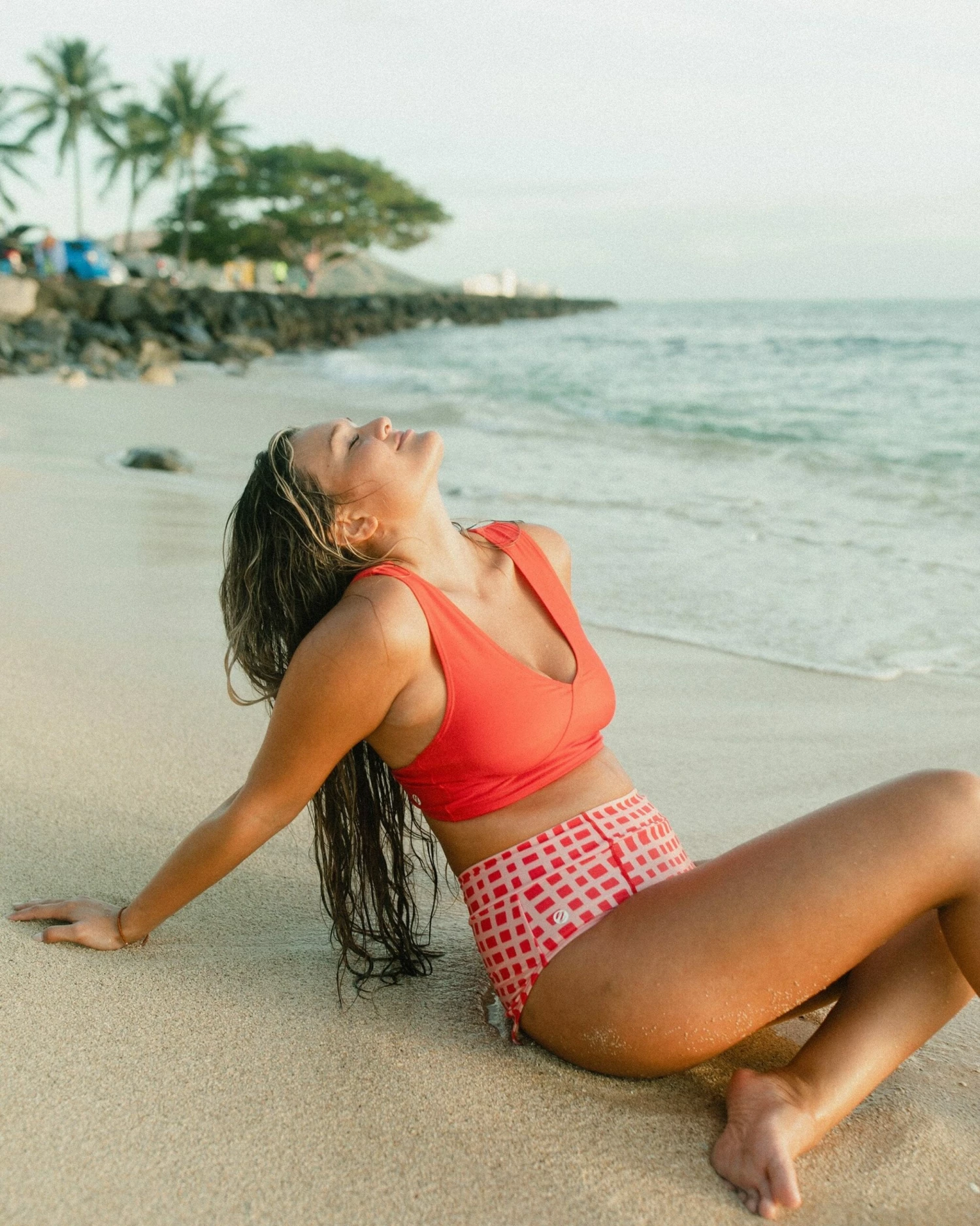This beautiful v-neck swim top features our head-turning Nani Switch V back creating elevated style in a sporty design. Made to look great and feel comfortable while attacking any adventure. Solid bright Red Poppy color.