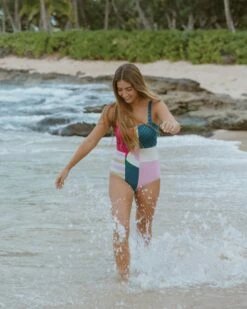 The Seabrook Patchwork One Piece offers color-blocked panels with a variety of patterns for style. You can’t go wrong with this one piece because it is the perfect combo of all the best patterns of the Nomad collection! Plus it is so flattering and comfortable, you’ll feel great laying by the pool or making that beach volleyball dive!
