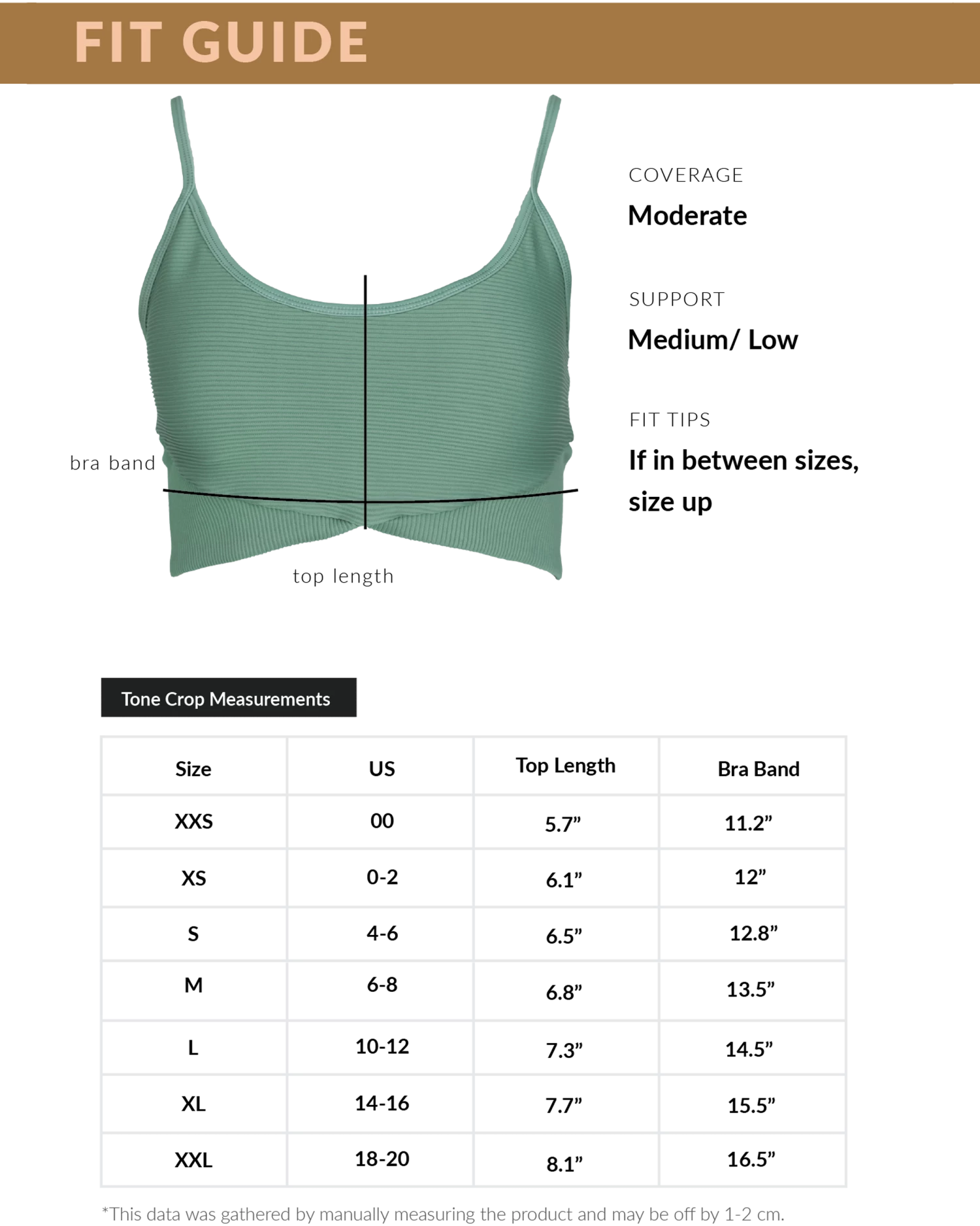 The Textured Pine Tone Crop is the perfect bright and bold top with a soft texture. The Tone Crop is comfortable and gives the best amount of support! Did we mention it also has adjustable spaghetti straps for a customizable fit and minimal tan lines?